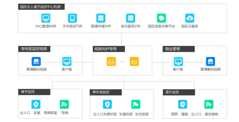 为大楼提供视频监控和楼宇对讲等安防系统,对楼宇门禁、停车场等关键区域统一管理,帮助楼宇和办公人员实现全面的安全保护;
