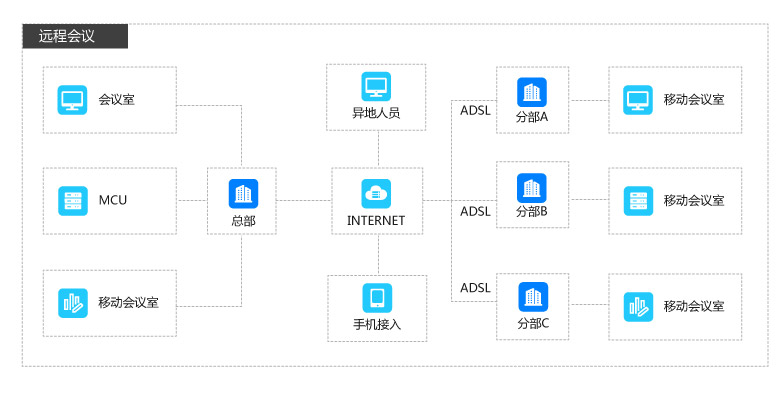 领导指示等,主会场和分会场人员较为集中,会议室比较固定,使用视频会议,提高参会便捷性。