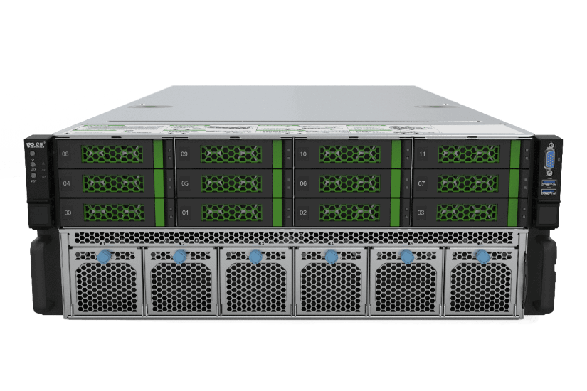 可选支持12块 3.5英寸或 24 块 2.5 英寸硬盘,支持热插拔,最多支持 24 块U.2 NVMe SSD, 提供海量存储空间;